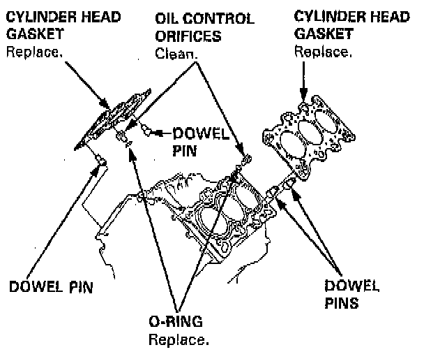 The cylinder head dowel pins and the head oil control orifice must be aligned.