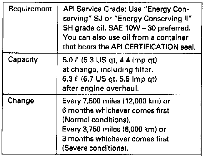 An oil with a viscosity of 10W - 30 is preferred for improved fuel economy and year-round protection in the vehicle.