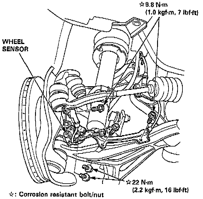 5. Remove the wheel sensor from the knuckle and front lower control arm.