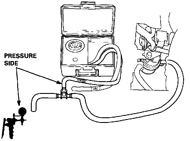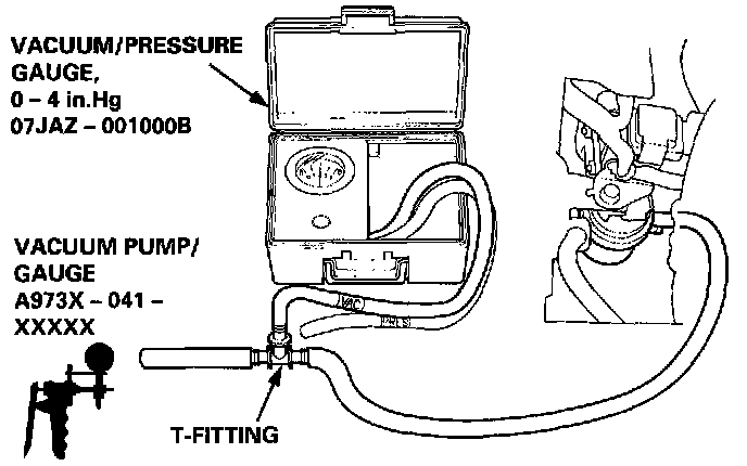 If the vacuum stabilizes (valve opens) below 0.8 kPa (6 mmHg, 0.2 in.Hg) or above 2.1 kPa (16 mmHg, 0.6 in.Hg), install a new valve and retest.