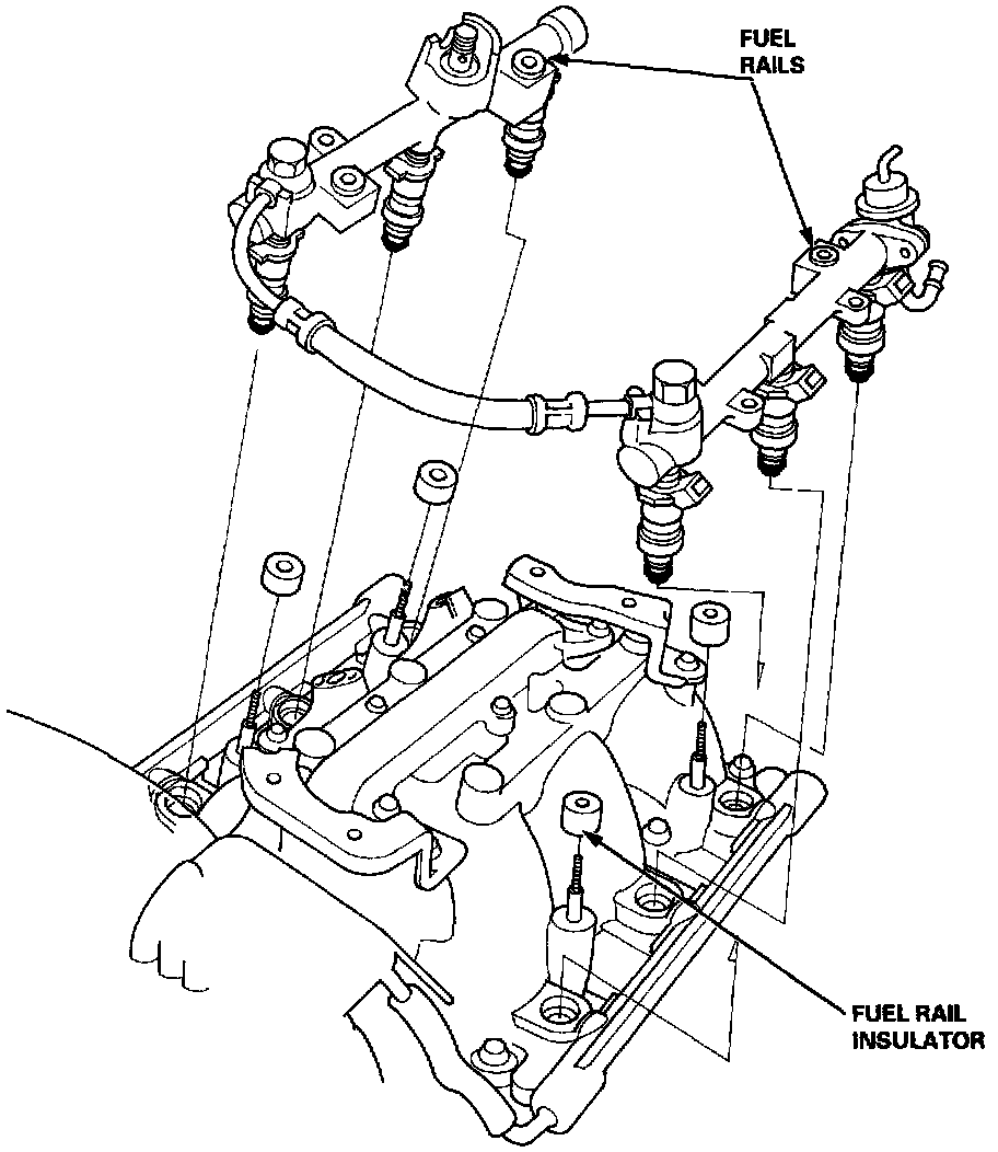 13. To prevent damage to the O-rings, install the fuel injectors in the fuel rail first, then install them in the intake manifold.