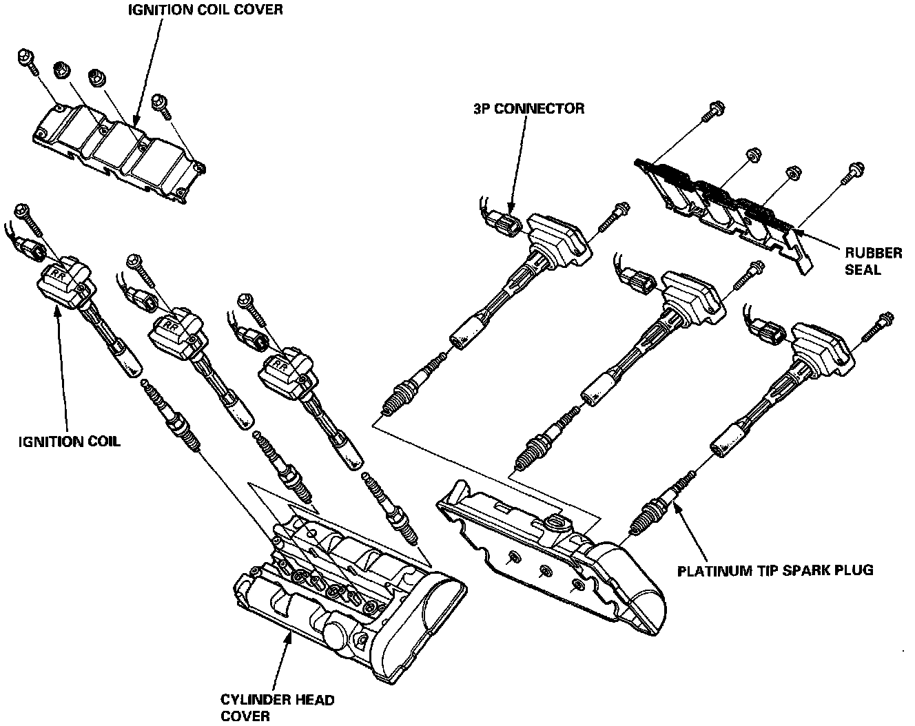CAUTION: Ignition coils and spark plugs can become very hot in use; do not touch them until the engine has cooled down.Ignition Coils/Spark Plugs Removal: