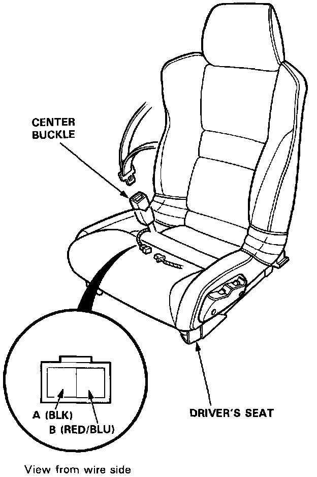 1. Slide the driver's seat all the way forward, then disconnect the 2P connector from the seat belt switch.Seat Belt Switch Test: