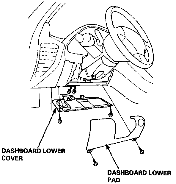 SRS components are located in this area. Review the SRS component locations, precautions, and procedures before performing repairs or service.1. Remove the dashboard lower cover, and disconnect the connectors.