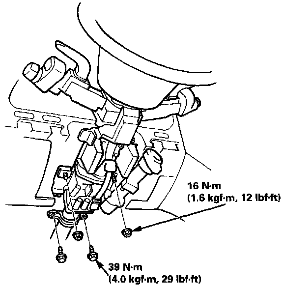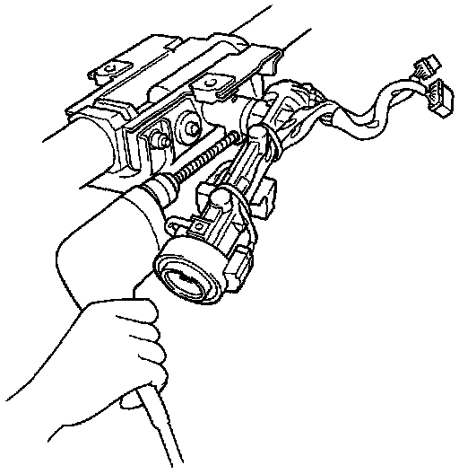 2. Loosely tighten the new shear bolt. Make sure the projection on the ignition switch is aligned with the hole in the steering column.
