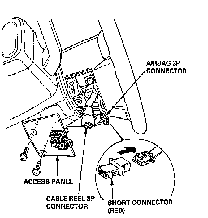 2. Remove the access panel from the steering wheel lower cover, then remove the short connector.