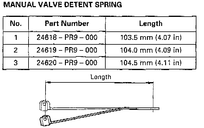 NOTE: Select the appropriate manual valve detent spring when these parts are replaced:- Manual Valve