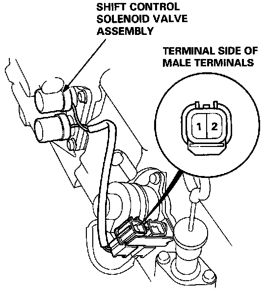 3. Replace the shift control solenoid valve assembly if the resistance is out of specification.