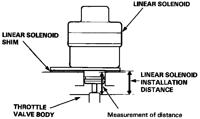 3. Measure the distance between the mounting surface of the linear solenoid and the throttle valve body.