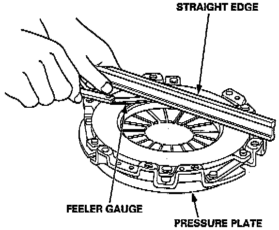 3. Inspect for warpage using a straight edge and feeler gauge. Measure across the pressure plate at three points.