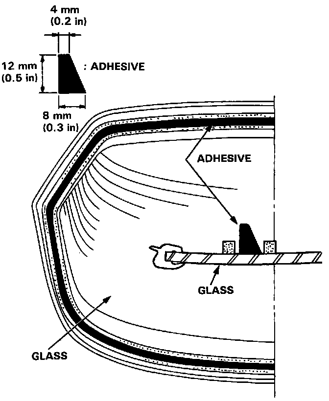 NOTE: Let the car stand for at least four hours after glass installation. If the car has to be used within the first four hours, it must be driven slowly.