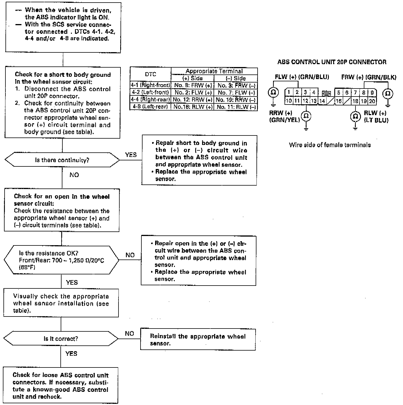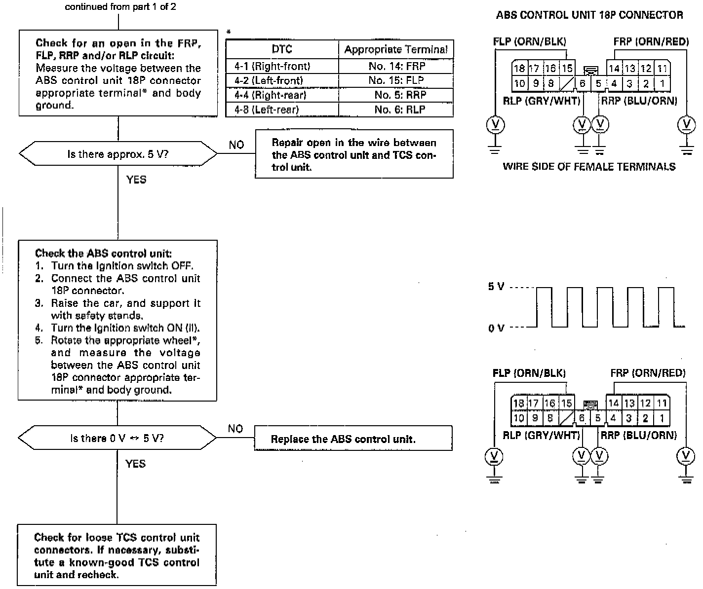NOTE: The Traction Control System (TCS) indicator light comes on when the average speed of either the right or the left front wheels exceeds 10 mph (16 km/h) and the ABS control unit signals for more than three seconds.Part: 1 Of 2