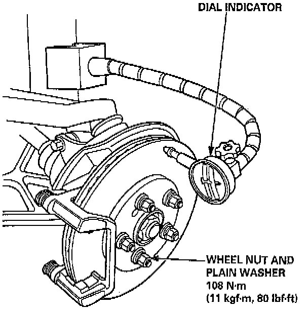 NOTE: A new disc should be refinished if its runout is greater than 0.10 mm (0.004 inch).