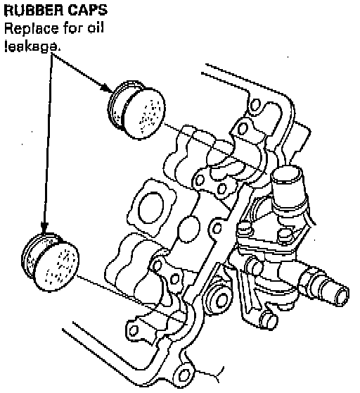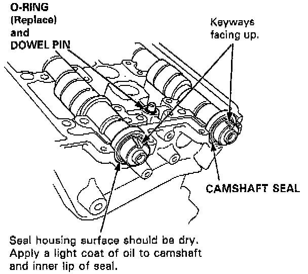 1. After wiping down the camshaft and journals in the cylinder head, lubricate both surfaces and install the camshafts and rubber caps.