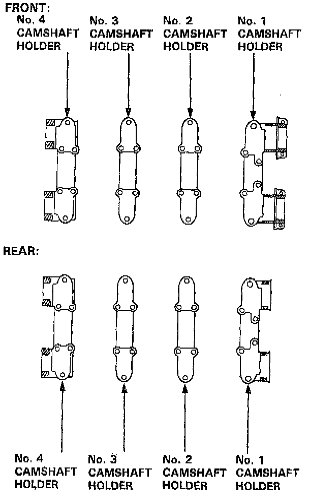 5. Apply liquid gasket to the head mating surfaces of the No. 1 and the No. 4 camshaft holders.