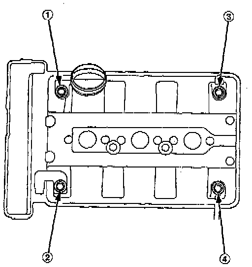 8. Tighten each bolt two turns at a time in the sequence shown to insure that the rockers do not bind on the valves.