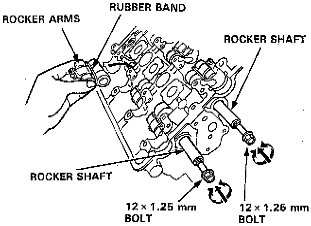 2. Install the rocker arms while passing the rocker arm shaft through the cylinder head.