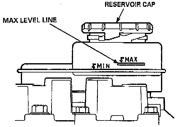 6. Start the engine and allow it to idle for a few minutes, then stop it. Check the fluid level in the modulator reservoir and refill to the MAX level line if necessary.