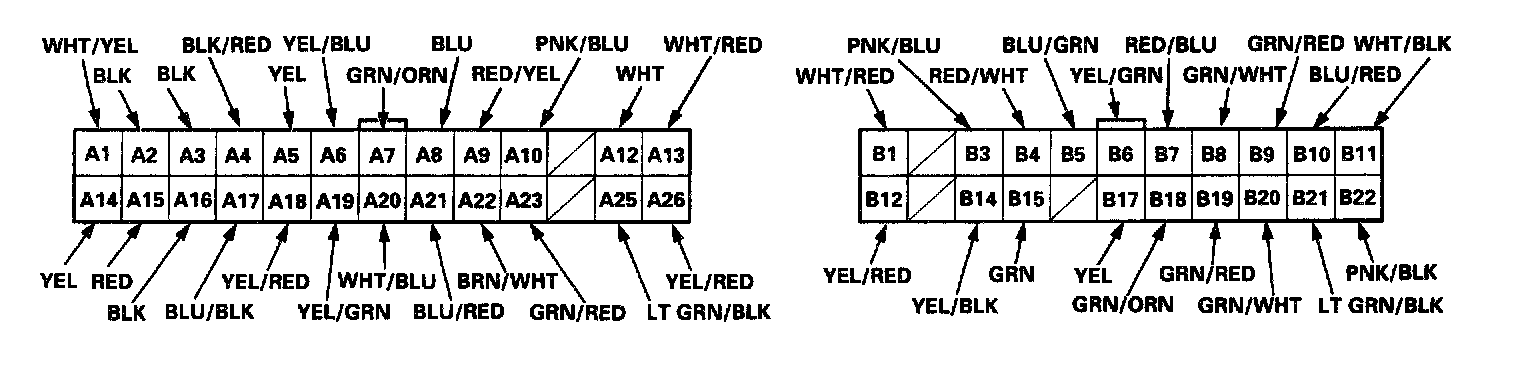 - All connector views are from the wire side of female terminals unless otherwise noted.