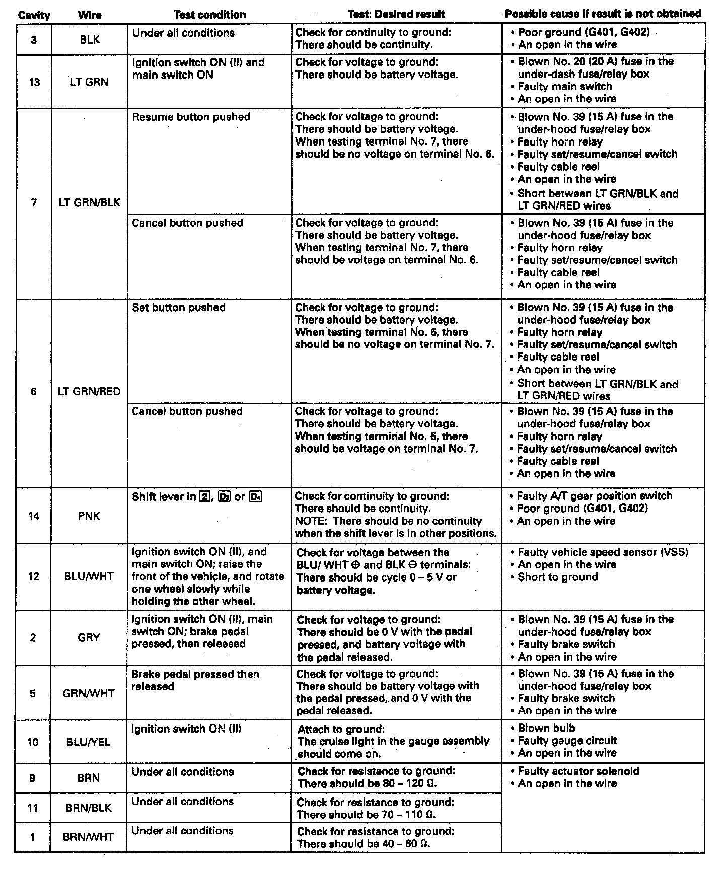 Cruise Control Module: Testing and Inspection