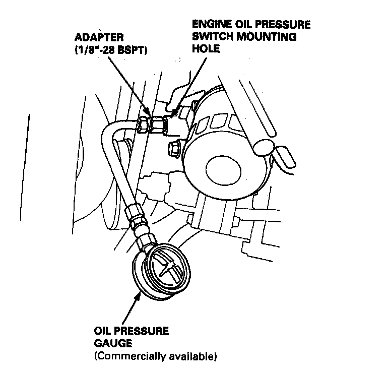 2. Remove the engine oil pressure switch, and install an oil pressure gauge.