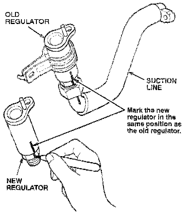9. Make a mark across the junction of the pressure regulator and the suction line so you can install the suction line on the new regulator in the same position