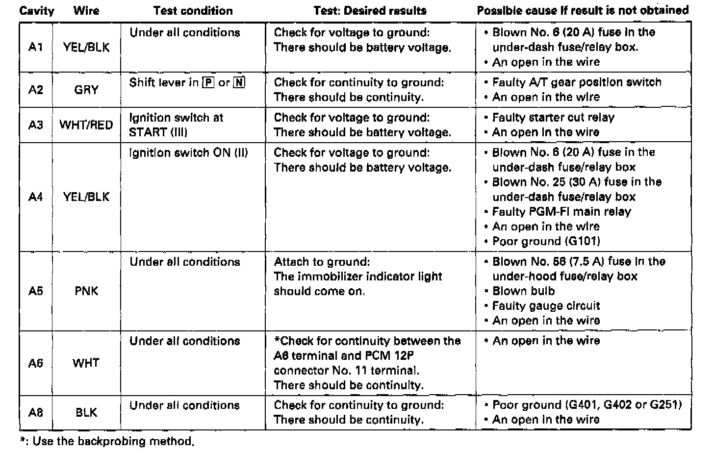 - If all the input tests prove OK, check the immobilizer receiver and transponder.