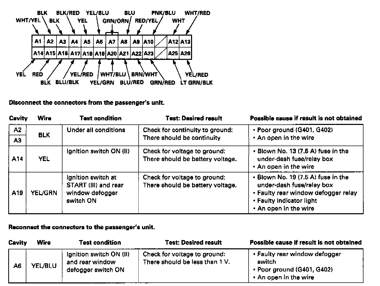NOTE: Before testing, go to the Troubleshooting Guide. Be sure to go through self-diagnosis function modes 1 and 2.