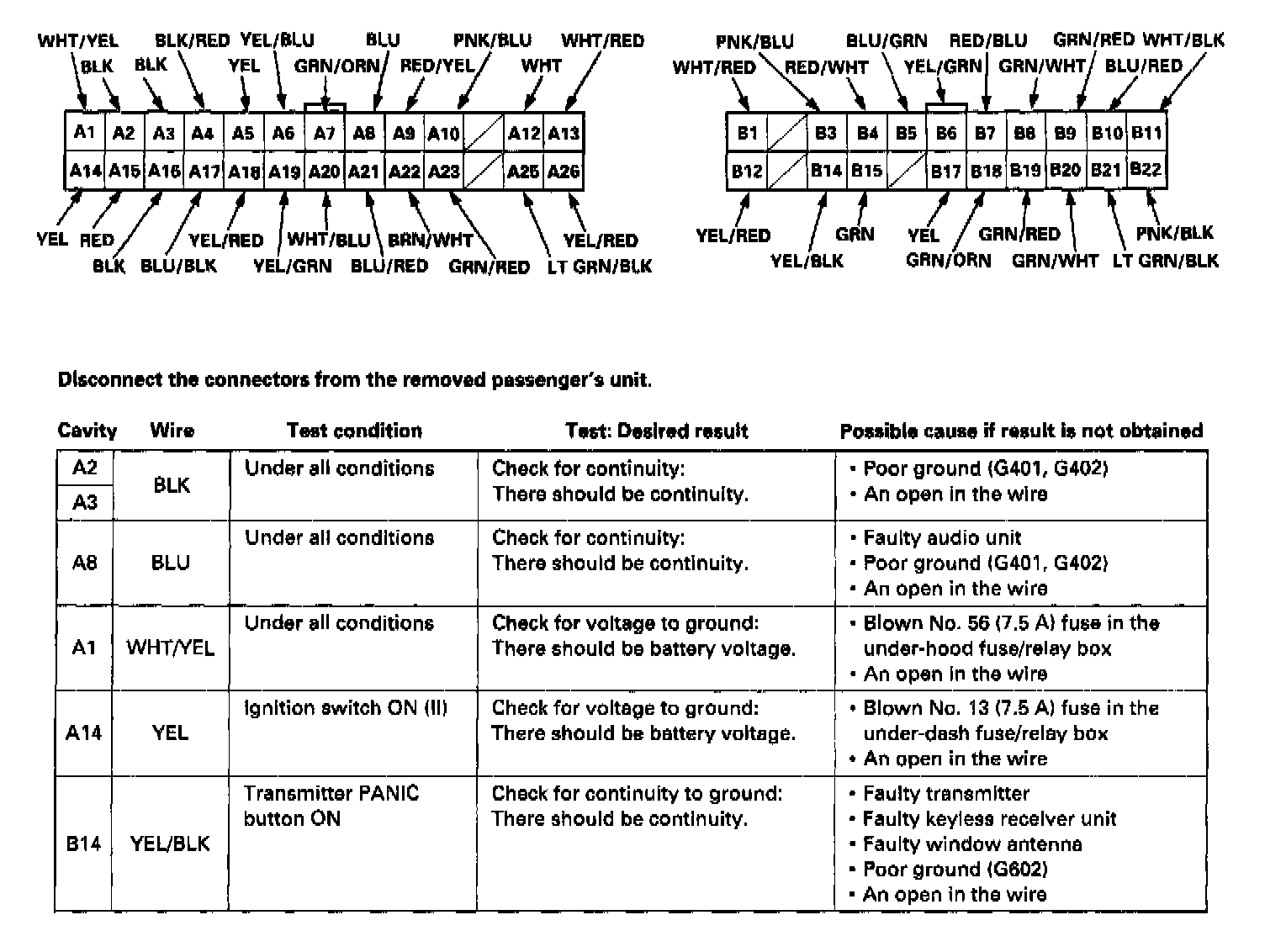 2. Disconnect the 22P and 26P connectors, then remove the passenger's unit.
