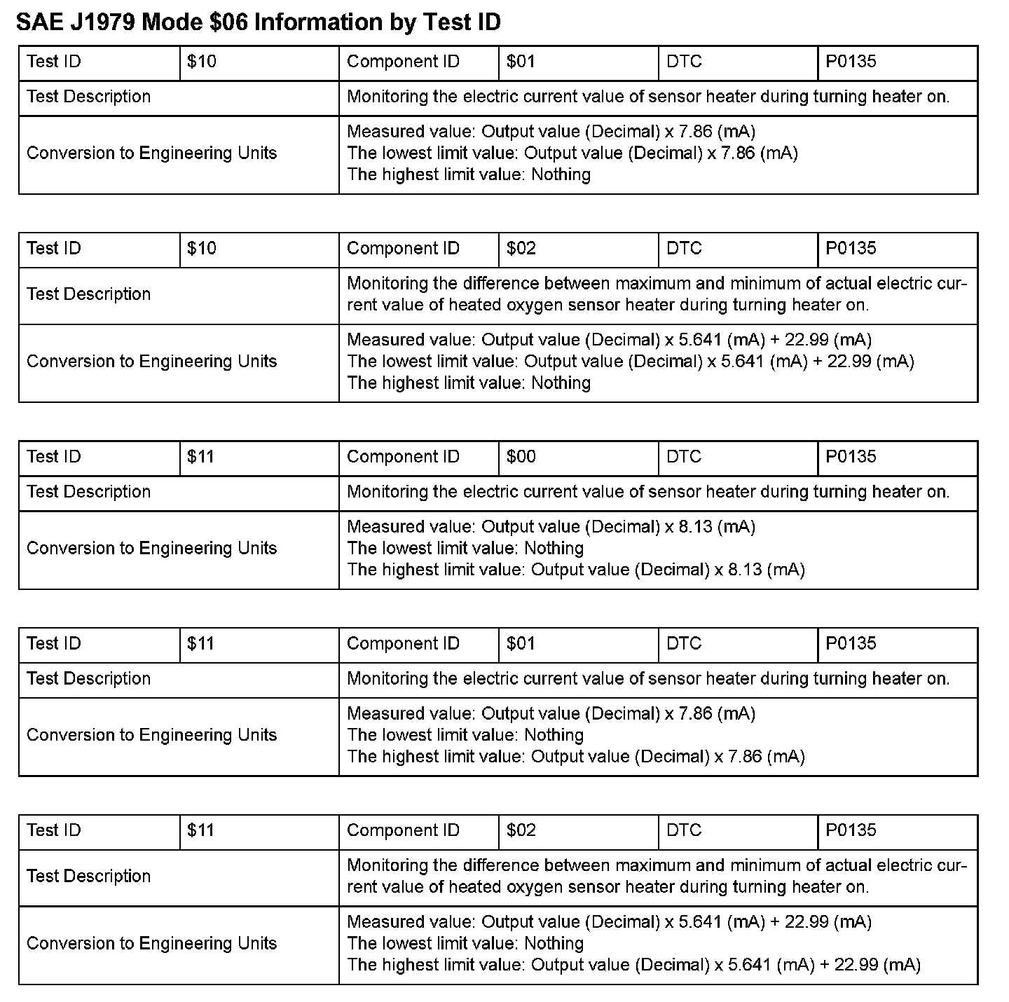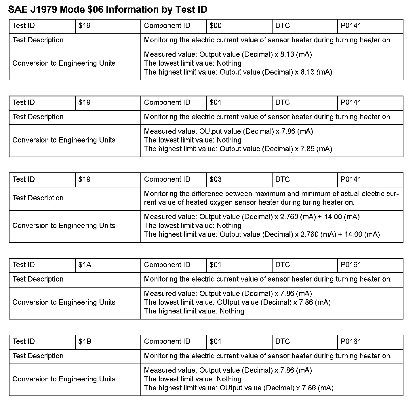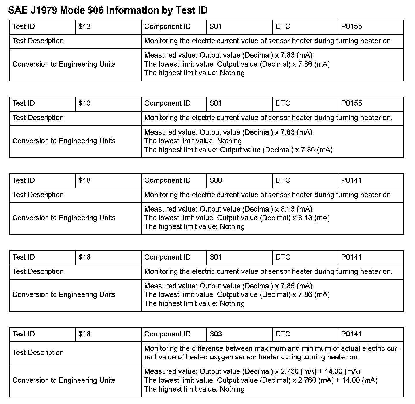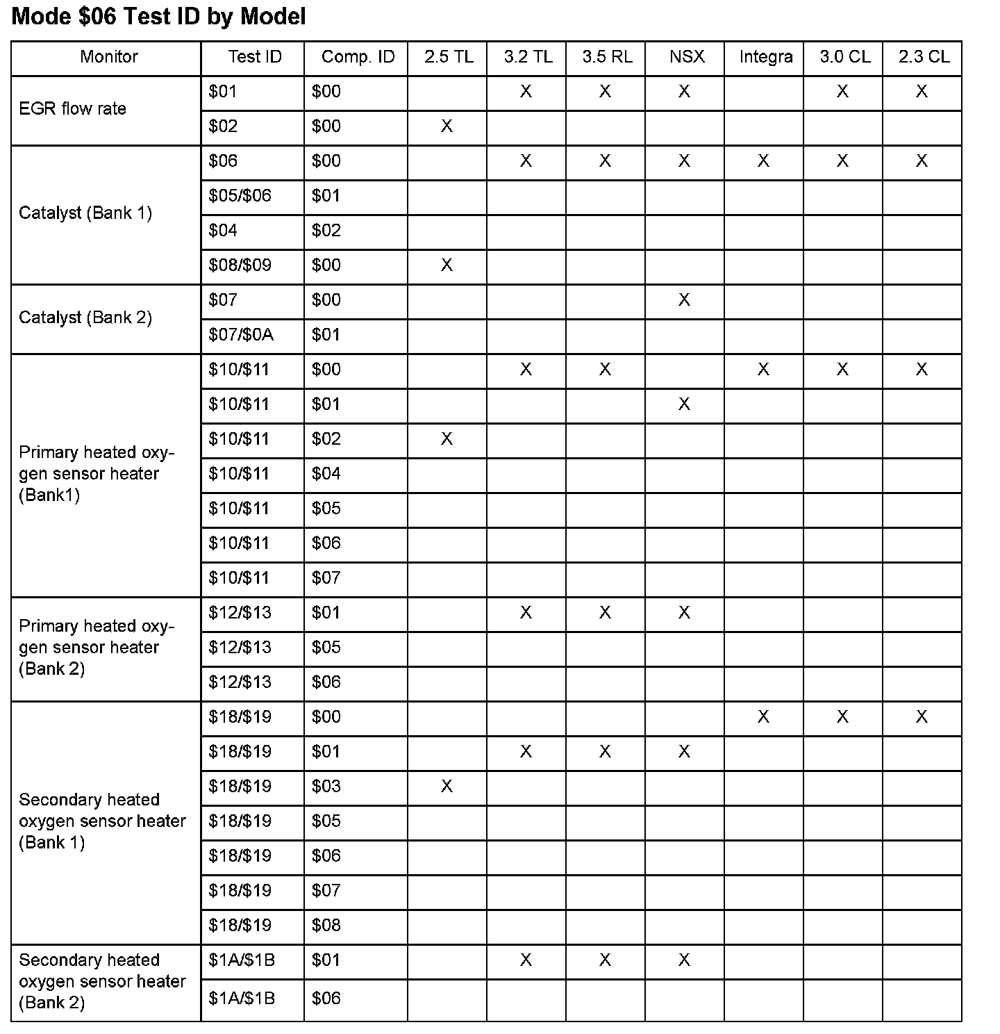 MODE $06 DATA CHARTSTest ID By Model (1 of 2):