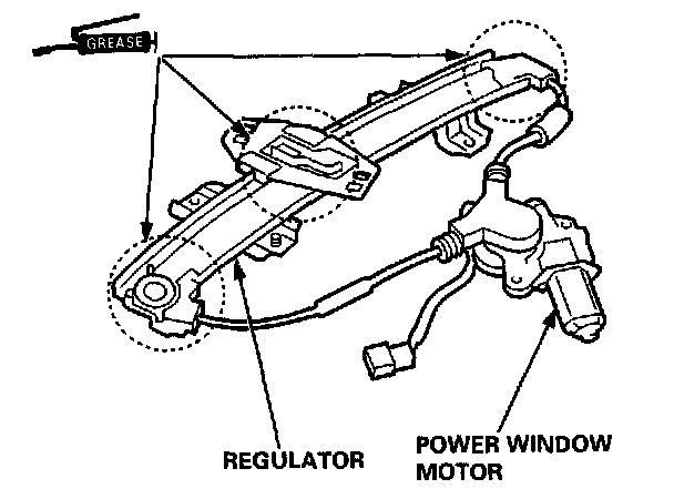 4. Grease all the sliding surfaces of the regulator where shown.