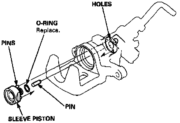 7. Install the sleeve piston so the hole in the bottom of the piston is aligned with the pin in the cam, and two pins on the piston are aligned with the holes in the caliper.