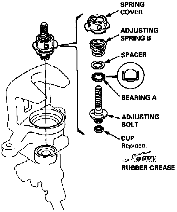 9. Fit the bearing A, spacer, adjusting spring B and spring cover on the adjusting bolt, and install them in the caliper cylinder.