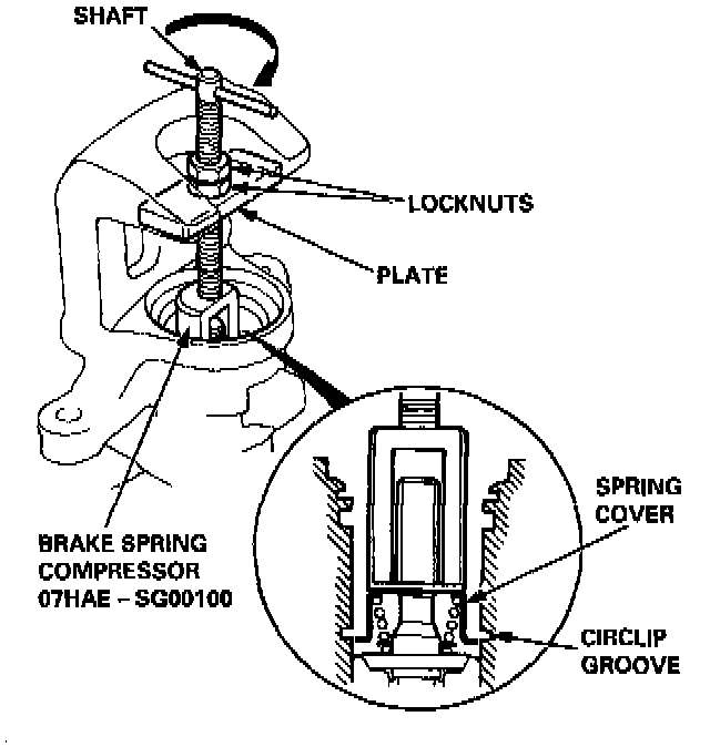 10. Install the special tool on the spring cover, and turn the shaft until the locknut contacts the plate.