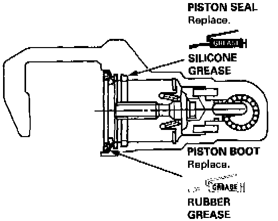 13. Coat a new piston seal with recommended silicone grease in the caliper seal set, and install it in the caliper.
