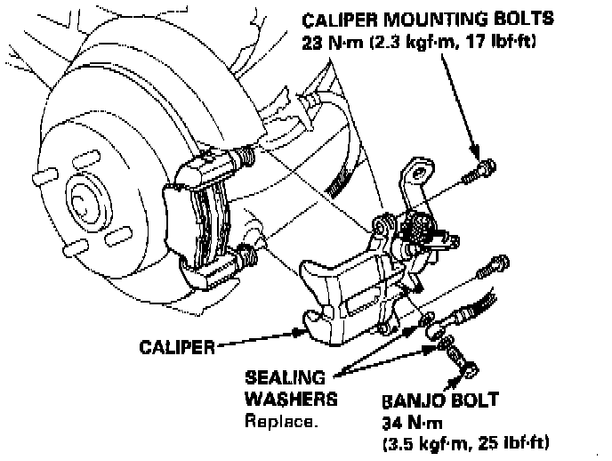 24. Connect the brake hose to the caliper with new sealing washers, and tighten the banjo bolt.