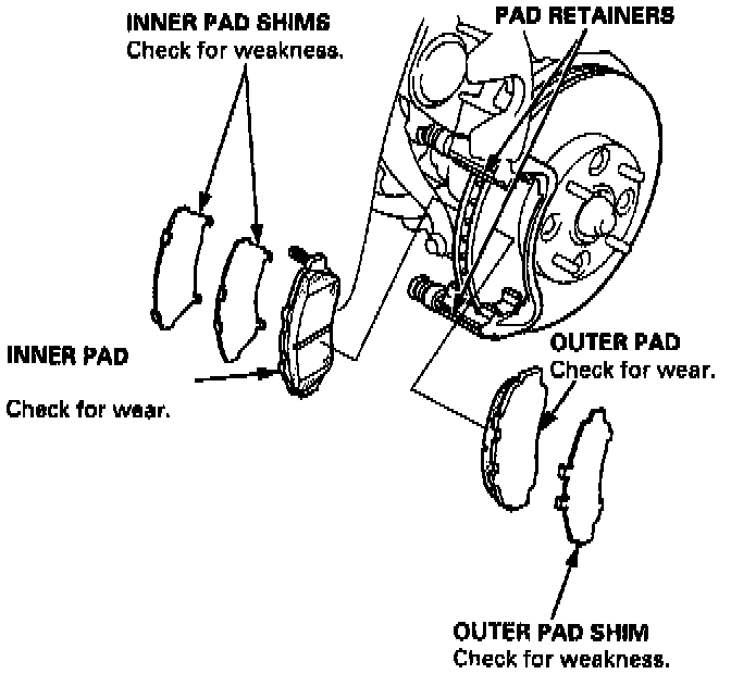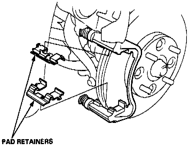 3. Remove the pad shims, pad retainers and pads.