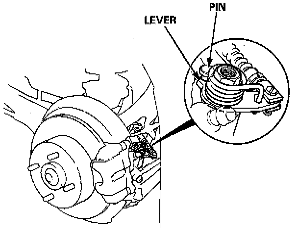 2. Make sure the parking brake arm on the rear brake caliper contacts the brake caliper pin.