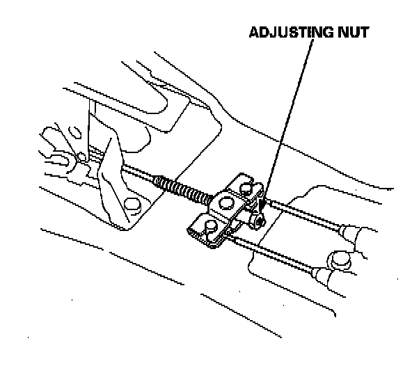 NOTE: After rear brake caliper servicing, loosen the parking brake adjusting nut, start the engine, and depress the brake pedal several times to set the self-adjusting brake before adjusting the parking brake.1. Raise the rear wheels off the ground, and support the vehicle on safety stands.