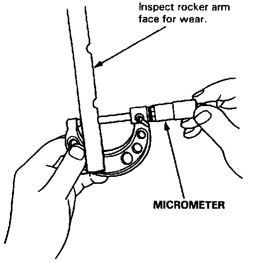 3. Measure the inside diameter of the rocker arm, and check for out-of-round condition.