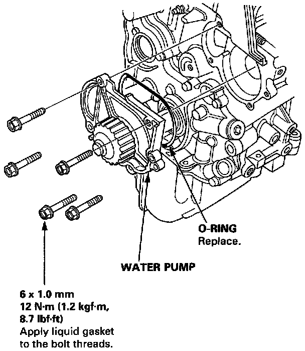 2. Remove the water pump by removing five bolts.