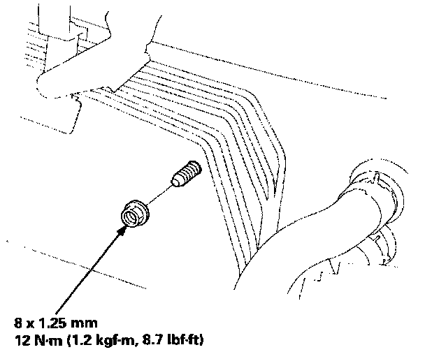 NOTE: When removing the mounting nut, take care not to damage or bend the fuel pipes, brake pipes, etc.