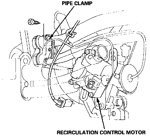 3. Disconnect the connector from the recirculation control motor, and remove the self-tapping screw from the pipe clamp.