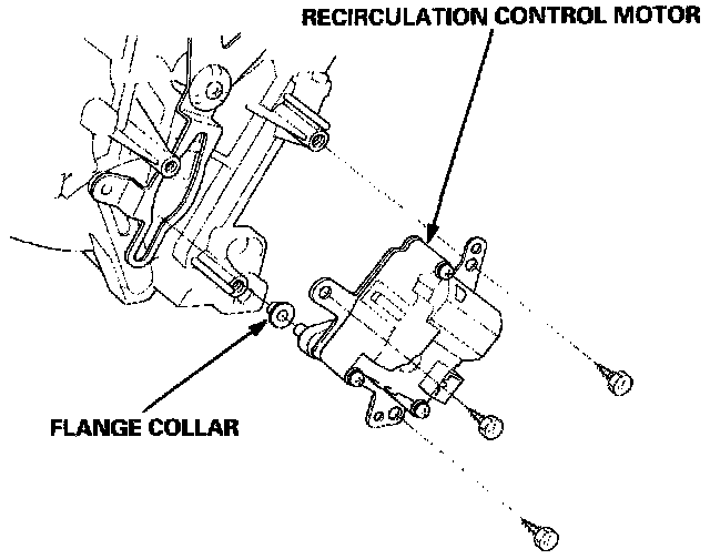 5. If necessary, remove the three self-tapping screws, the recirculation control motor and the flange collar.