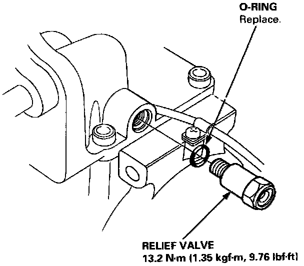 3. Replace the O-ring with a new one at the relief valve, and apply a thin coat of refrigerant oil (ND-OIL 8) before installing it.