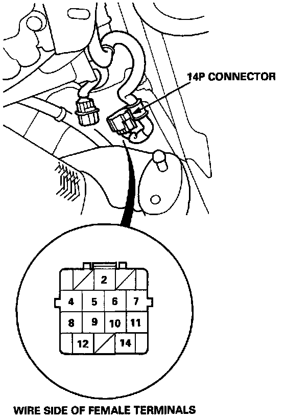 3. If the fuse and bulbs are OK, disconnect the 14P connector from the A/T gear position switch (back-up light switch).