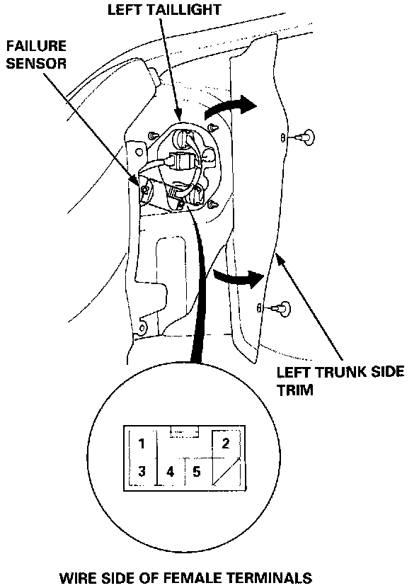 2. Open the trunk lid, and pull back the left trunk side trim to uncover the failure sensor.