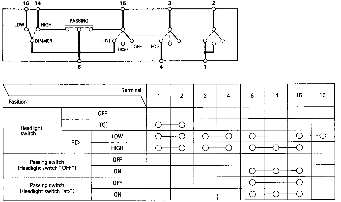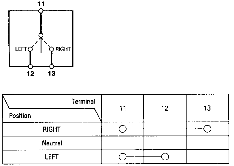 ^ If the terminals look OK, check for continuity between them in each switch position according to the table. If there is no continuity between any of them, check for continuity in the switch harness.