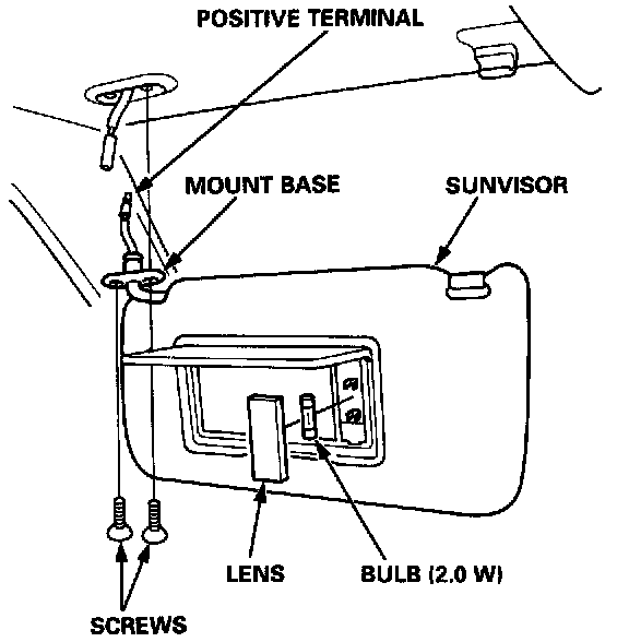 2. Disconnect the positive terminal, and remove the sunvisor.