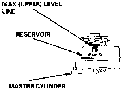 1. Make sure the brake fluid level in the reservoir is at the MAX (upper) level line.